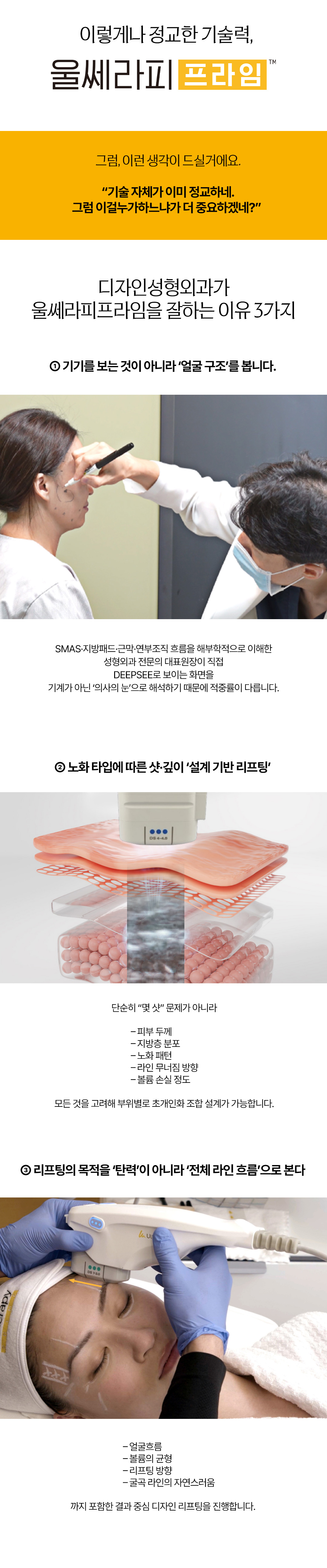 기존 울쎄라보다 정밀한 초음파 진단 기술이 적용되어 더욱 세밀한 맞춤 시술이 가능합니다.