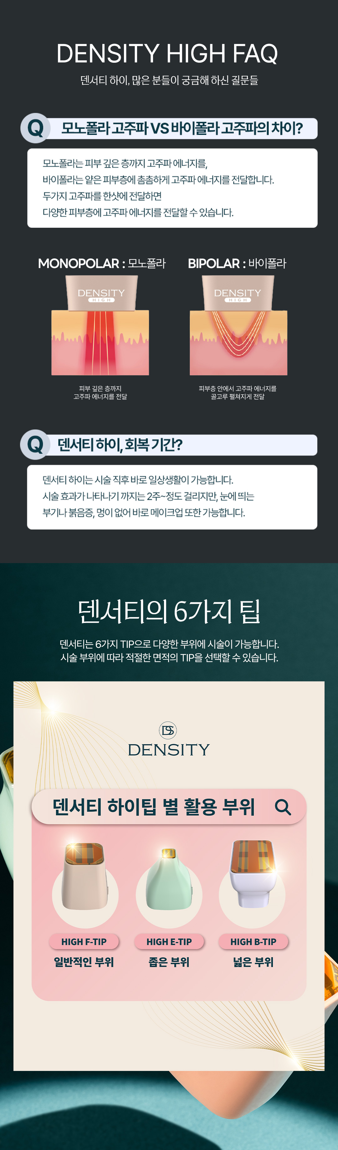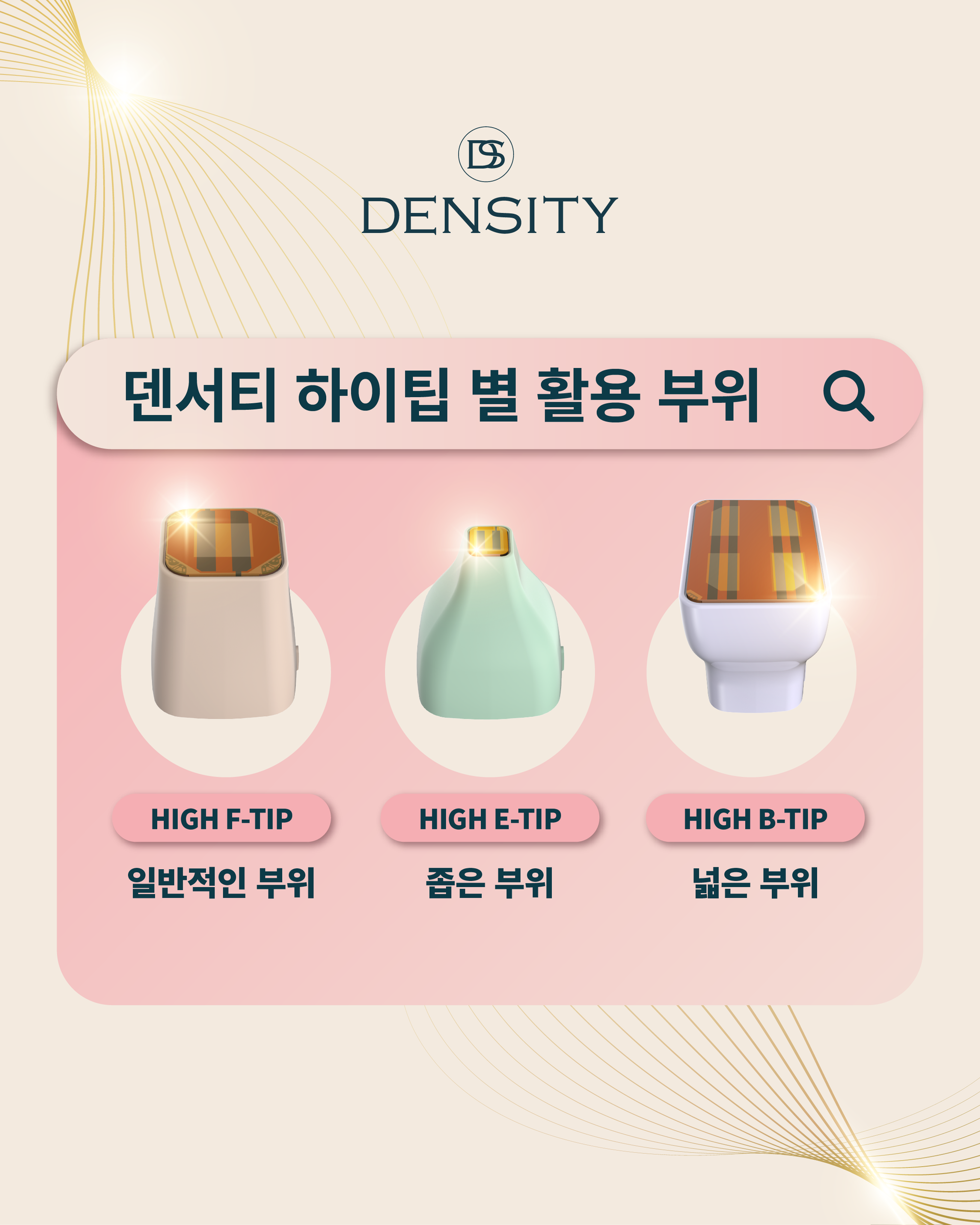 덴서티는 6가지 TIP으로 다양한 부위에 시술이 가능합니다.시술 부위에 따라 적절한 면적의 TIP을 선택할 수 있습니다.